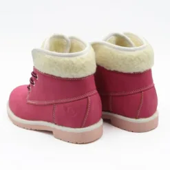 Botín Verazzi color Fucsia. Estilo Casual. Capella símil cuero con cuello y lengua de chiporro. Forro textil que proporciona calor. Plantilla Acolchada para mejorar la comodidad. Planta de 2 cm de altura. Ajuste mediante cordones. Suela de Goma. Altura de caña 10 cm. Capellada: Simil Cuero.Forro: Textil.