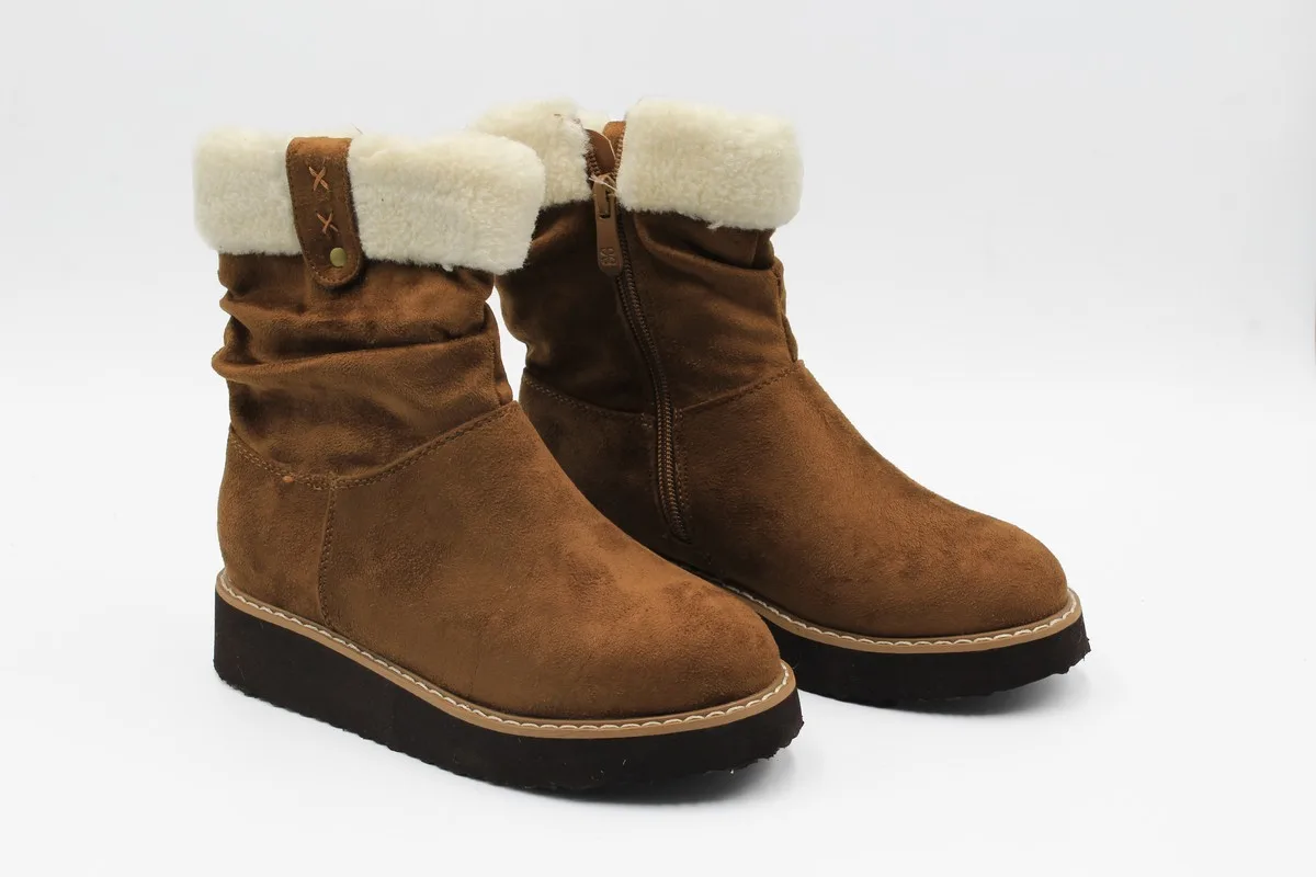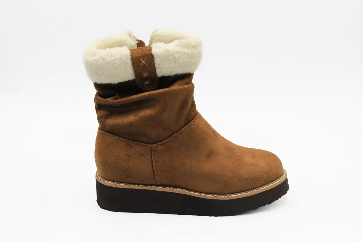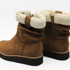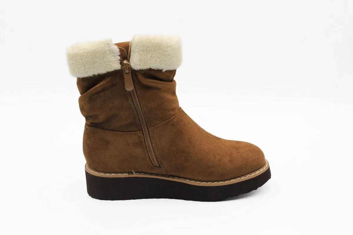 Botín Verazzi color Marrón. Estilo Casual. Capella símil gamuza con cuello de chiporro. Forro textil que proporciona calor. Plantilla Acolchada para mejorar la comodidad. Planta lisa de 3 cm de altura. Suela de Goma. Altura de caña 14 cm. Capellada: Simil Cuero. Forro: Textil.