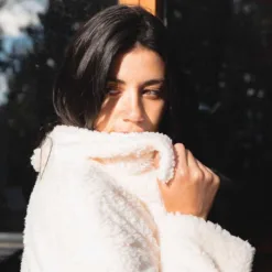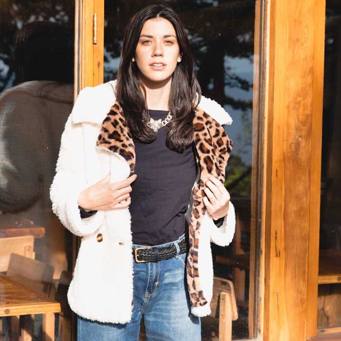 Chaqueta estilo Teddy con forro interior en abertura de Leopardo. Cierre con botones doble.