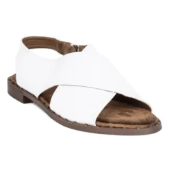 Sandalia Agua de Coco color Blanco. Capellada abierta cruzada simil cuero liso con cierre al costado interno. Planta plana con taco de 2cm de altura. Capellada: Sintético Forro: Sintético. Planta: Poliuretano Tabla de Medidas. Numero Medidas 35 22,5cm36 23,5cm37 24,5cm38 25,5cm39 26,5cm40 27,5cm (*horma grande)