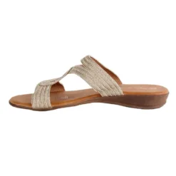 Sandalia Agua de Coco color Dorada. Capellada abierta con tejido metalizado en empeine. Planta comfort de 2,5 cm de altura. Capellada: Textil. Forro: Textil.Planta: Poliuretano. Tabla de Medidas Número Medidas 35 23cm 36 24cm 37 25cm 38 25,5cm 39 26cm 40 26,5cm *La medida de la horma corresponde a la medida total de la plantilla.