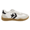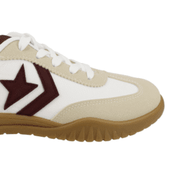 Zapatilla Mujer Agua de Coco color Crema y estrella en color burdeo. Estilo Urbano. Recupera el estilo con estas zapatillas de inspiración retro. Este modelo combina una base de lona blanca con refuerzos en gamuza beige y el icónico logo de estrella en negro. Es la fusión perfecta entre la moda deportiva vintage y el confort moderno. La característica más llamativa es su suela de goma color caramelo con agarre, pero que hoy ofrece un look urbano y atemporal. Ideales para un outfit casual o para las amantes del estilo sneaker retro. Ajuste mediante cordones planos. Plataforma de 2,5 cm de altura y caña de 6,5 cm.